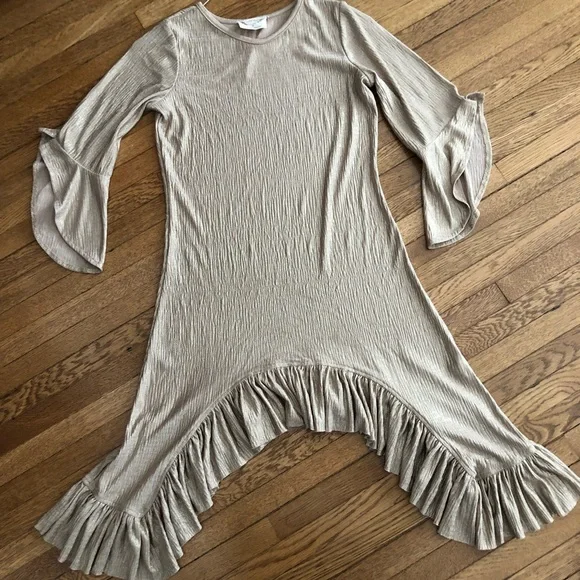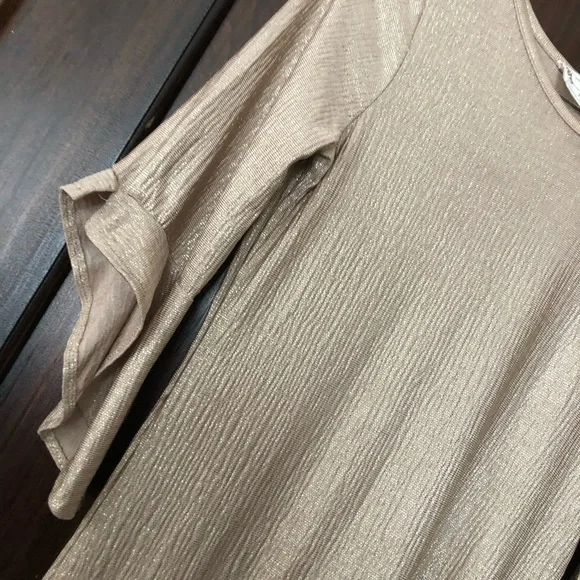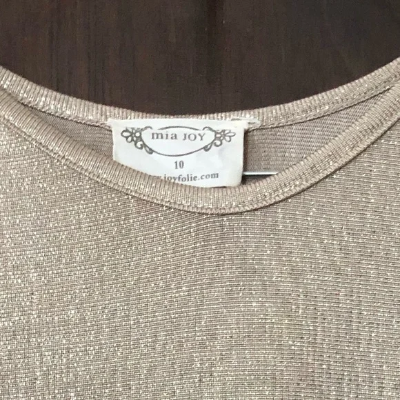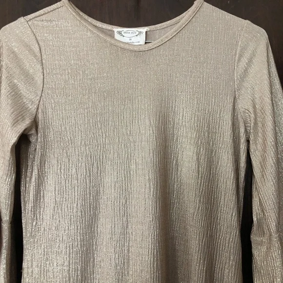 Mia Joy Joyfolie gold metallic dress hi-low ruffle side hem girls 10 bell sleeve