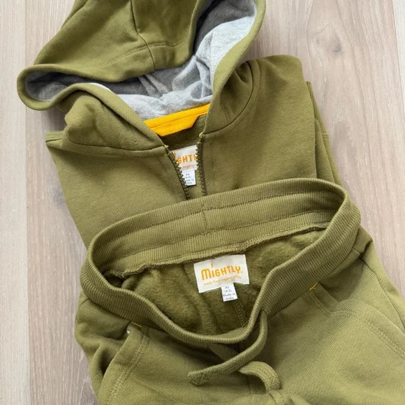 Mightly Organic Cotton Hoodie & Jogger Set - Brand New - Size 4/5TBrand: MightlySize: 4/5 YearsCondition: New without tagsDescription:This ultra-soft, high-quality olive green sweatsuit from Mightly is made from 100% organic cotton and designed for comfort. Set includes:•Full-zip hoodie with front pockets•Matching joggers with adjustable drawstringEthically made and perfect for layering!Offers accepted. Bundle to save on shipping.Tags: Mightly, organic cotton, kids hoodie, jogger set, eco-friendly, new