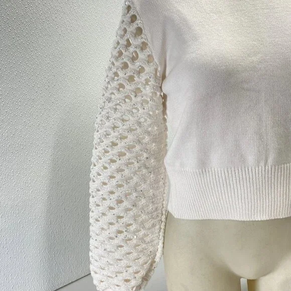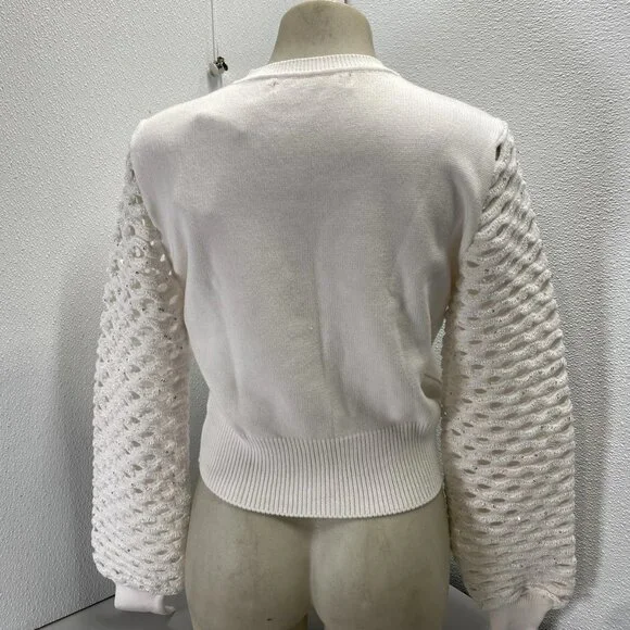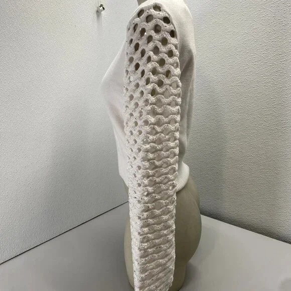 NEW Maria Pavan Women’s Sequin Braided Long Sleeve Soft Sweater – White Size SDescription:New with tags. Elevate your wardrobe with the Maria Pavan Sequin Braided Long Sleeve Soft Sweater in pristine white. This luxurious piece features intricate braided detailing adorned with subtle sequins, adding a touch of sparkle to your ensemble. Crafted from ultra-soft knit fabric, it offers both comfort and style, making it perfect for various occasions. The classic crew neckline and long sleeves provide a timeless silhouette that pairs effortlessly with both casual and dressy outfits.Features:Brand: Maria PavanStyle: Sequin Braided Long Sleeve Soft SweaterSize: Women’s Small (S)Color: WhiteMaterial: Soft knit blend (exact fiber content not specified)Design: Braided detailing with subtle sequin embellishmentsNeckline: Crew neckSleeves: Long sleevesFit: Comfortable and stretchyCare: Hand wash cold or dry cleanCondition: New with tagsRetail Price: $288.00Styling Tip:Pair with tailored trousers and ankle boots for a chic daytime look, or dress it up with a pencil skirt and heels for an evening ensemble.