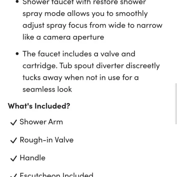 Sleek and Gorgeous. Did some renos and did not end up using this bathroom set. Transform your bathroom into a spa-like experience with the Jaida tub and shower. The innovative restore customizable spray technology enables you to adjust the shower spray concentration from intense to soothing. The Jaida tub spout also features an integrated diverter that creates a sleek look. This family expresses grace and elegance with soft, clean lines and subtle traditional styling cues