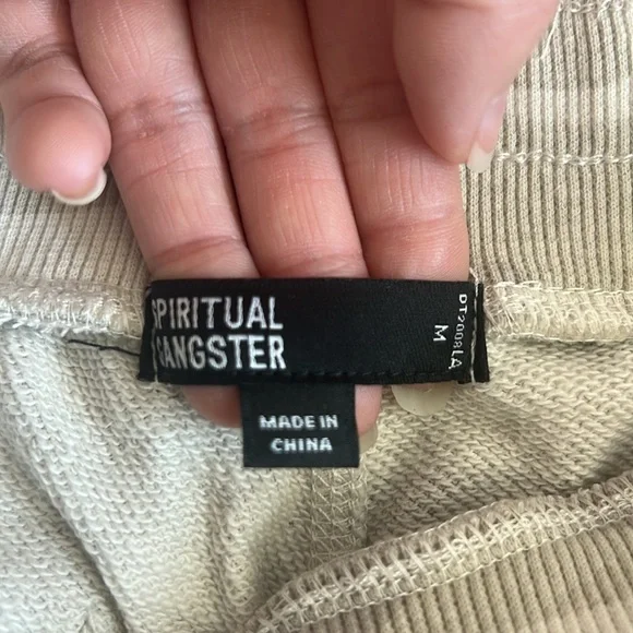 NEW Spiritual Gangster Camo Revive Sweatpants They are light-colored with a traditional camouflage pattern and feature an elastic waistband with a drawstring, side pockets, and the "SPIRITUAL GANGSTER" logo printed on one of the upper legs.These sweatpants are the Heathered Camo Jogger Pants from Spiritual Gangster. The brand is known for athleisure wear that combines ancient wisdom with modern culture. Their clothing is designed for comfort and movement, suitable for yoga, workouts, or casual wear. Material: 100% cotton Waist (across): 14.75”Rise: 12.25”Inseam: 28”New with tagsNext business day shipping