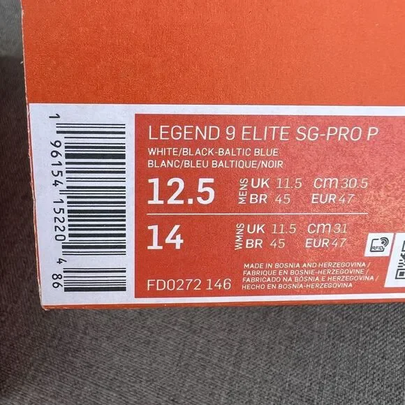 Nike Tiempo Legend 9 Elite SG-Pro P White Baltic Blue FD0272-146 Men's Size 12.5