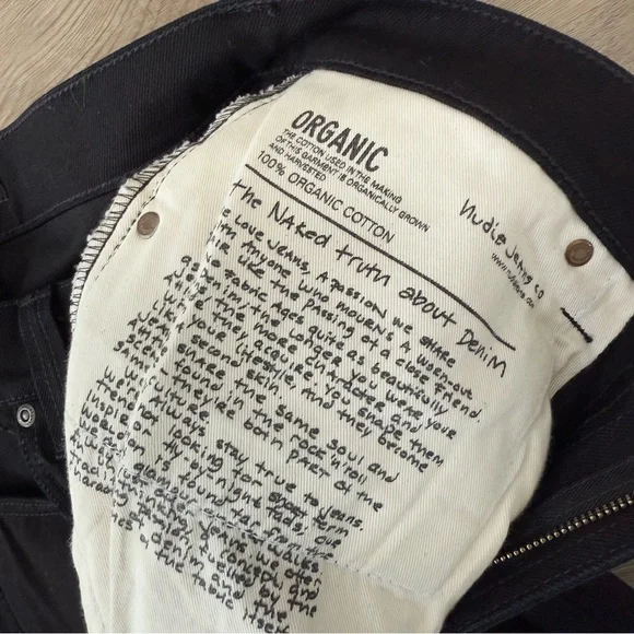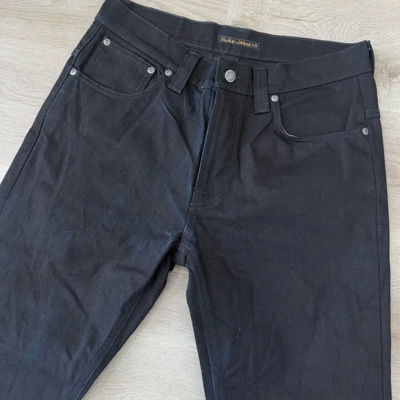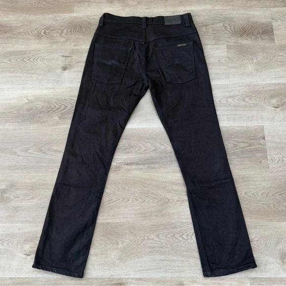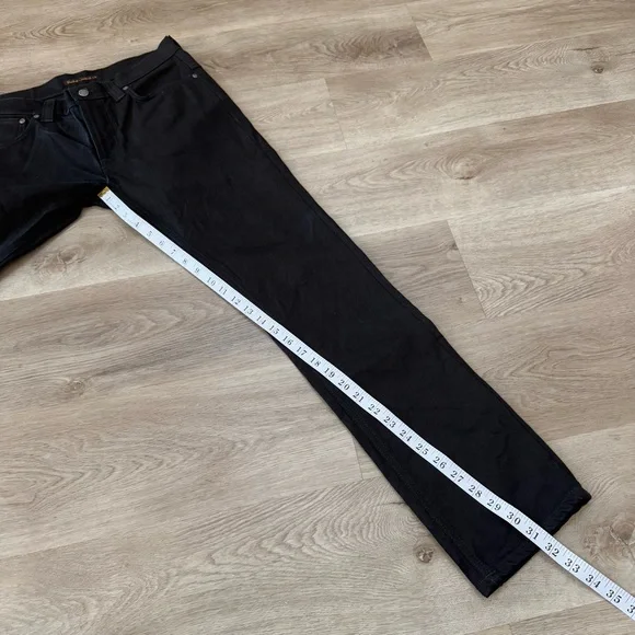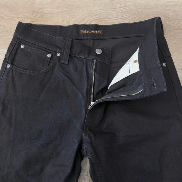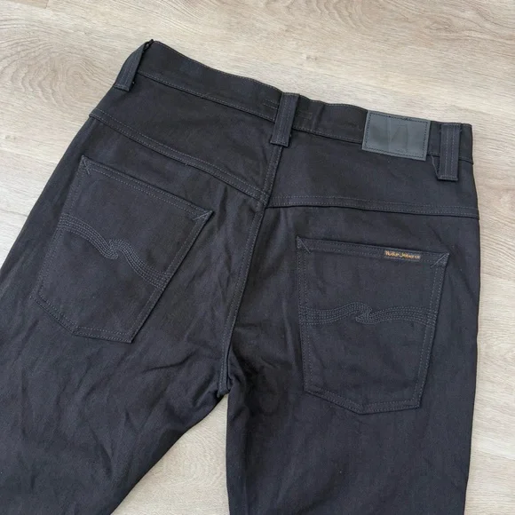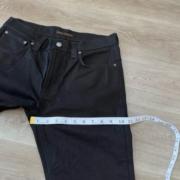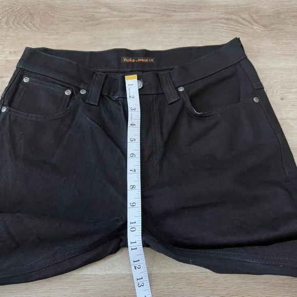 Nudie Jeans Thin Finn Dry Organic Black Ring Denim Slim Fit Stretch Mens 32x32Size 32x32 (Please see measurements in the photos)In good pre-owned condition item is in good shape Item has been used/ worn and remains in great condition. If any flaws they will be highlighted in photos. For questions about condition or measurements please feel free to reach out. Thank you for choosing to shop second hand !If the item is pre-owned, the actual size may differ from the label. Look at the measurements in the photos before purchasing. If you're not sure about the size, flat lay a similar item of your own and measure that item to compare with our measurements.