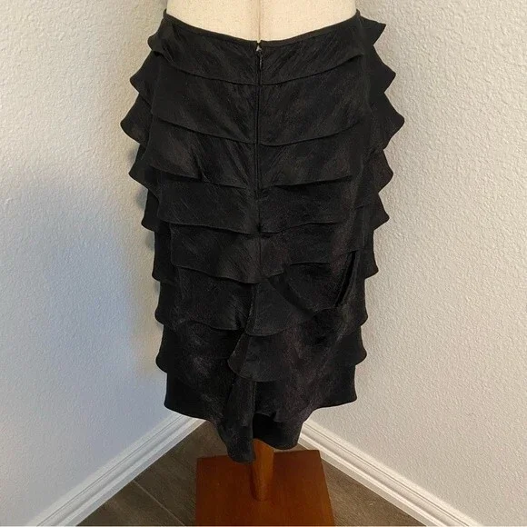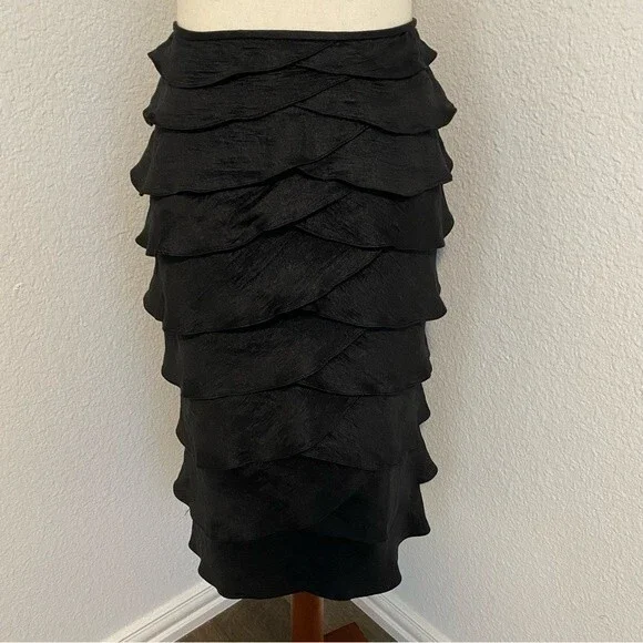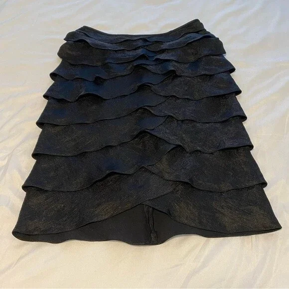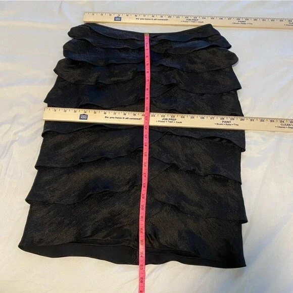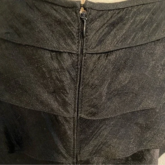 NWOT.Beautiful and sexy Adrianna Papell Evening Essentials black tiered shimmer ruffle skirt.Fully lined w/back zipper & clasp.Beautiful fabric that is eye catching!Perfect for:date night, party, cocktail, gala, wedding guest, holiday, travel, vacation, cruise, formal, prom.ITEM DETAILS:SKIRT:78% Rayon,, 18% Polyester, 11% Nylon.LINING:100% Polyester.Dry Clean.CONDITION:NWOTMEASUREMENTS (Flat Lay):Waist: 15",Hip: 20",Length: 25".I'm a fast shipper and sell only the best!INV:SK1125/9o/5