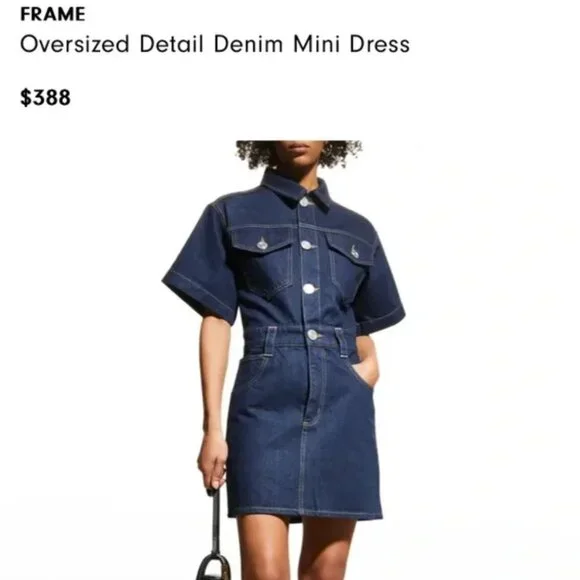 NWT!! Sooo cute but my hips don't lie and this doesn't fit in my hips lol. Never worn and in perfect condition. Features oversized metal detailing and ruching at the back for a flattering fit on the waist. Could be super cute for fall w/ boots!--------Button front closures.Style Number: ODDDR727 RINSEFabric: 100% cottonMachine wash coldImportedModel is 5'10" and wearing size SLength from shoulder to hem: 32.5"