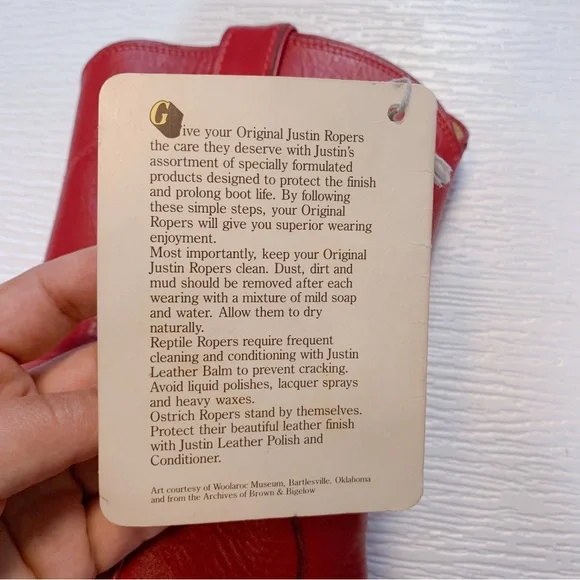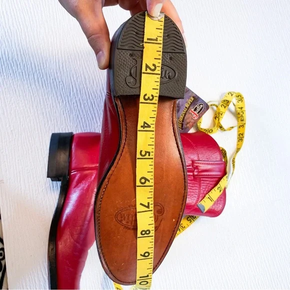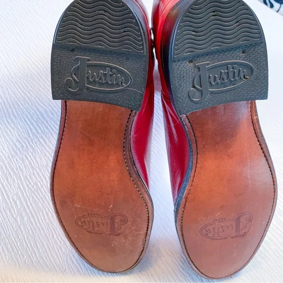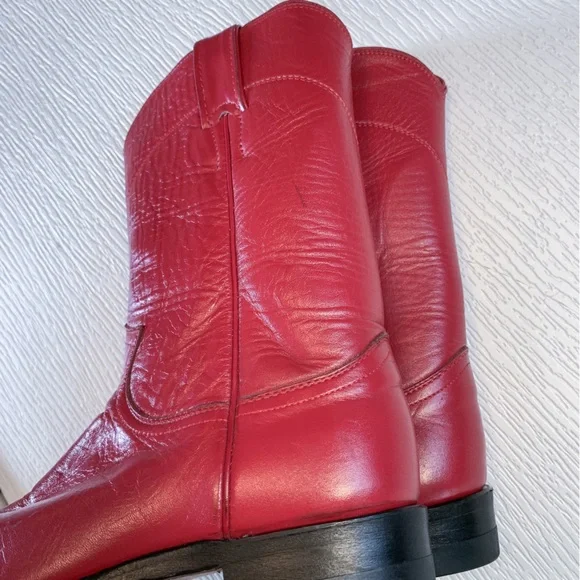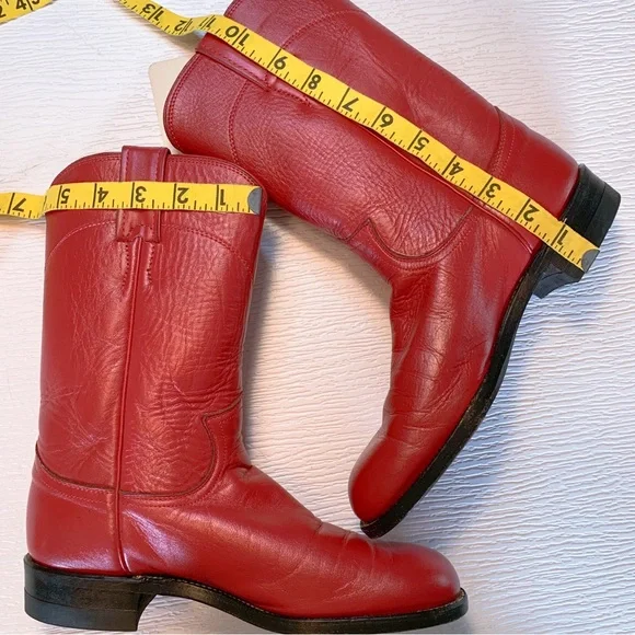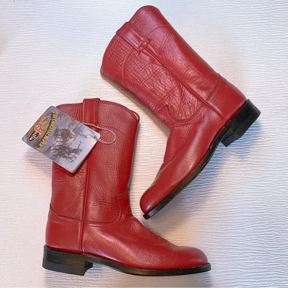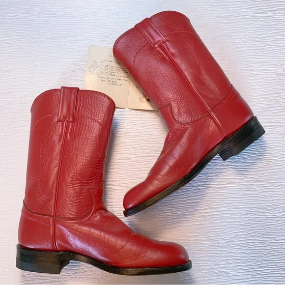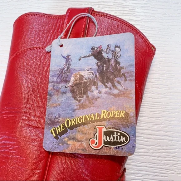 Stylish red leather vintage cowboy boots by Justin. This Original Roper Western Boot is perfect to create a bold look for a night out on the town or at a rodeo.• Brand New with Tag | NWT | minor wear from storage • See pics for details & measurements • For accurate sizing and info please research designer and size charts. ** These are often known to run big. Likely could fit a 6.5-7 narrow and with regular wear they will mold better to your foot • Color may vary slightly due to lens, lighting or viewers screen settings• Stock photos are for reference only and may vary slightlyQuestions? Leave a comment below!New to poshmark? Use my code MILLIEANDREW to save $10 https://posh.mk/kMEEKLXhosb Justin Vintage Roper Red Leather Cowboy Boots Size 5.5 C L3055