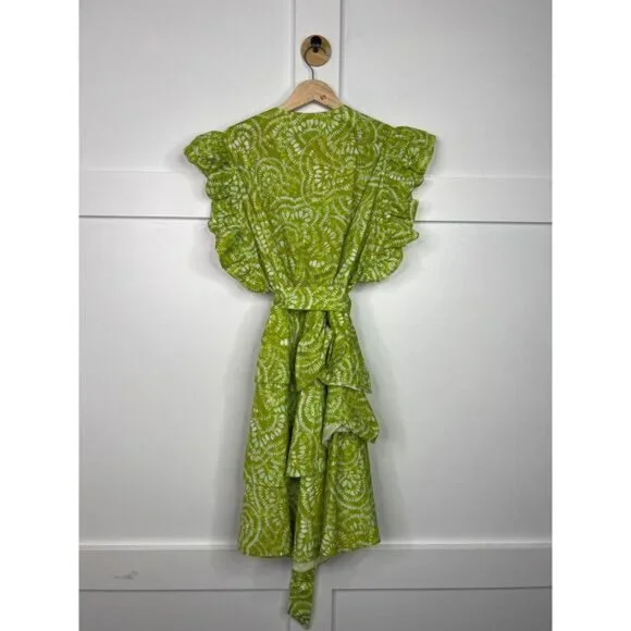 NWT Marie Oliver V-Neck Tie Waist Tiered Fiona Dress Lime Burst Green Size: S