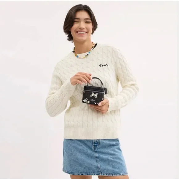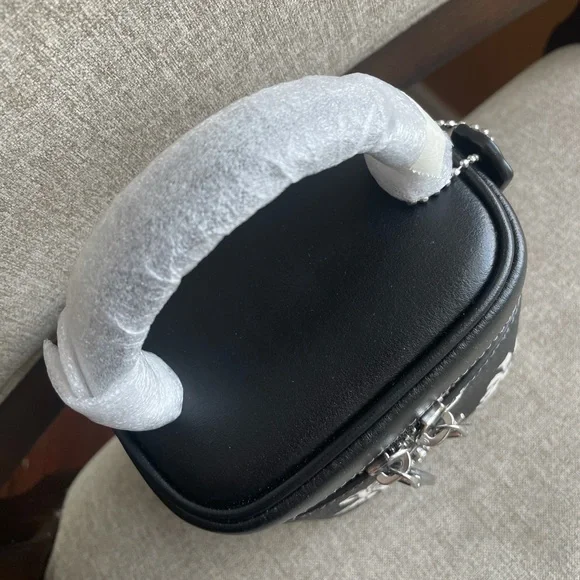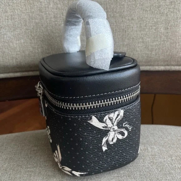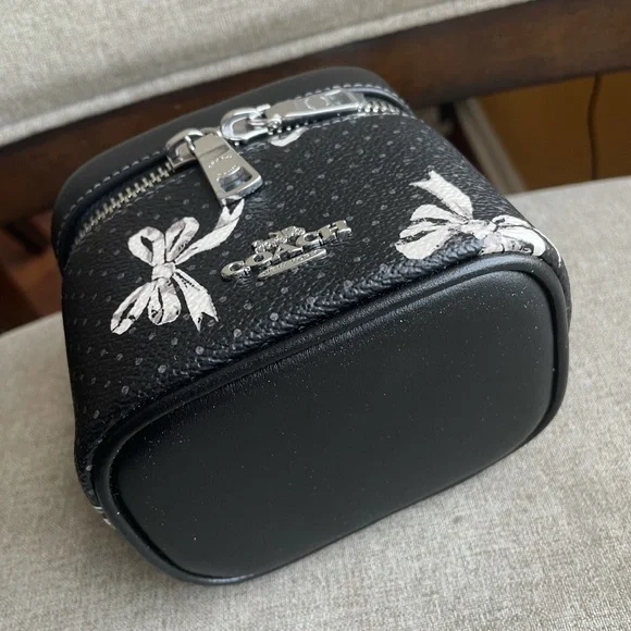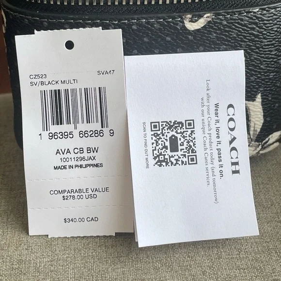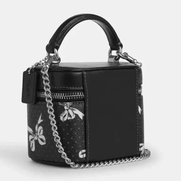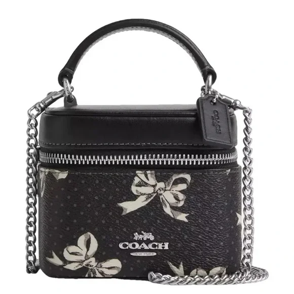 AVA CROSSBODY BAG WITH BOW PRINT (COACH CZ523)SILVER/BLACK MULTICOACH STYLE # CZ523| Printed coated canvas and smooth leather | Zip closure, fabric lining | Handle with 2 1/4" drop | Detachable strap with 23 1/2" drop for shoulder or crossbody wear | 4 1/2" (L) x 4" (H) x 3 1/4" (W)|Style No. CZ523|