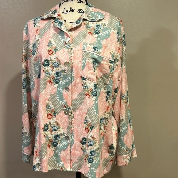 Drift off to dreamland in these pajamas cut from luxurious organic cotton in a supercomfy fit.27" top length; 27 1/2" inseam; 17" leg opening; 11 1/4" front rise; 14 1/2 back riseTop has front button closure; notched collar; long sleeve; chest patch pocketPants have elastic/drawstring waist100% organic cottonMachine wash