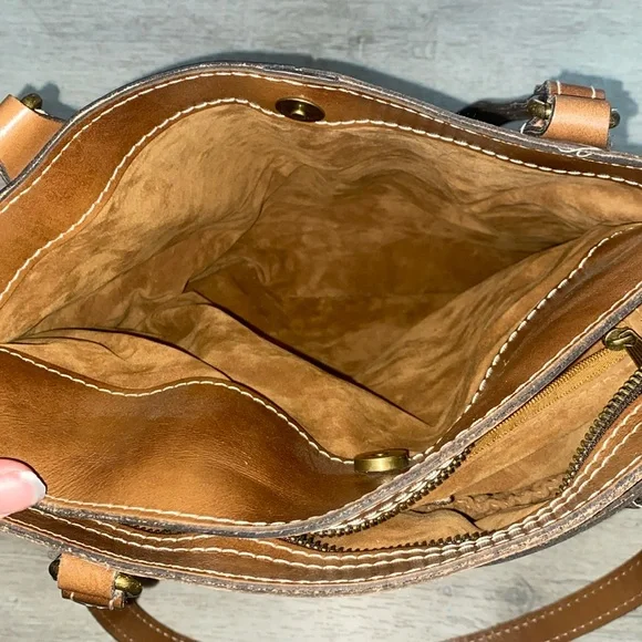 Gently used Patricia Nash Poppy Top Zip Map Tote. Some minor wear on the corners, other than that this shows no signs of wear!“Topped with double shoulder straps for comfortable carry, this distinctive tote crafted in Italian leather is great for organizing documents and devices for on-the-go convenience. A secure top zip main compartment combines with a burned edge finish for the ideal final touches that you'll love.”14-in. W x 11-in. H x 4-in. DTop zip closureExterior: front zip pocket, large slip pockets with magnetic snap on front and rearInterior: 1 zip pocket, 2 slip pocketsDouble top handles with 11 inch drop Antique brass hardware; self-color stitch trimLeatherSec. 12NH