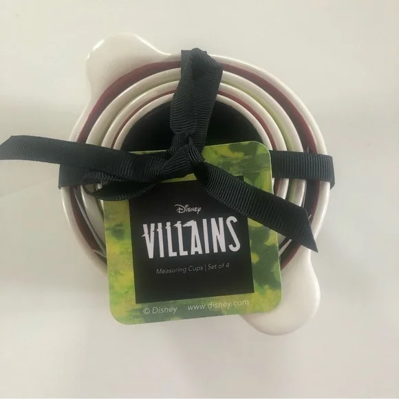 This set of measuring cups is a must-have for any Disney Villains fan! The set includes four ceramic cups, each featuring a different character from the franchise. The cups are brand new and have never been used, ready for your kitchen or collection.The round cups have a white finish, featuring a Disney Villain. The set comes with four items and is a new release from Rae Dunn Disney. Perfect for baking or displaying, these measuring cups are a great addition to your collectibles.