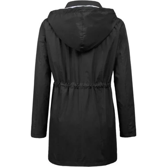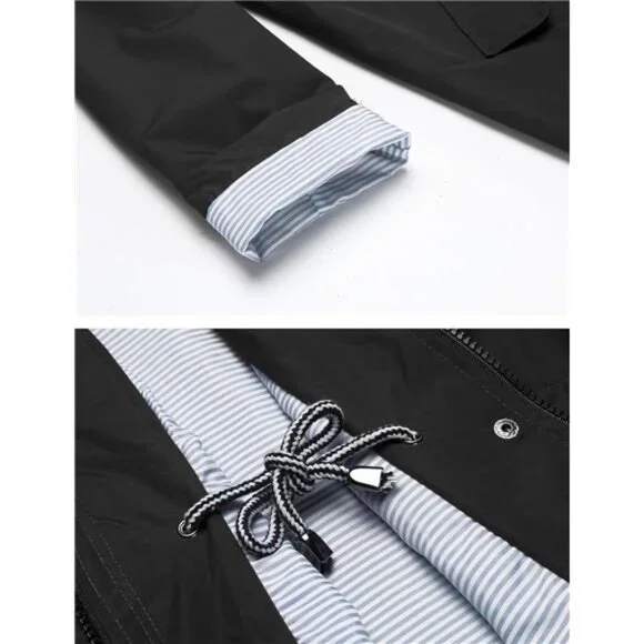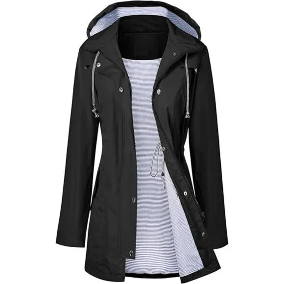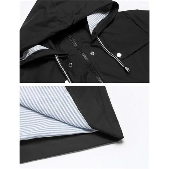 *MATERIAL: 100% Polyester Waterproof Material With Striped Cotton Lined, Breathable, Soft Touch, Windproof, Easy To Package.*DESIGN: This Women Rain Jacket With Attached Hood, Drawstring Waist Design. Solid Pattern, Sun Protection And Waterproof Function, Breathable, Skin-touch, Quick-drying, Lightweight Casual Fit, Front Pocket Decoration, Suitable For All Seasons.*OCCASION: Suitable For Hiking, Climbing, Traveling, Camping, Sports, Outdoor, Easy To Quick-drying When It Is Light Rain Or Snow And Wind.*SIZE:Please Check Our SIZE CHART Picture In the Left Or Detailed Size Info Below In Product Description Carefully.If You Have Any Question About Size, Just Contact To Us, We Will Try Our Best To Help You Get A Wonderful Shopping Experience.*GARMENT CARE: We Recommend You Washing By Hand Or Machine Wash On Gentle Cycle, Dry Clean, Do Not Iron, To Protect Waterproof Material Performance.