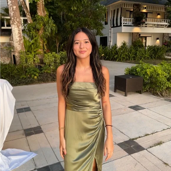 Barrow silk dressThe detailsBack smocking, straight neckline, side slit.Back zipper and high slit.Due to its heavier weight, and the use of more substantial, higher quality silk, our Ivory colorway is priced higher than other colors.This is a lightweight silk charmeuse fabric - 100% silk. Dry clean only. More on fabric & care.