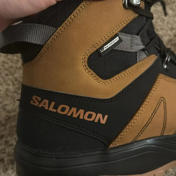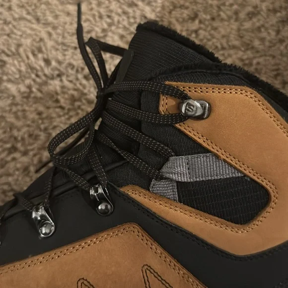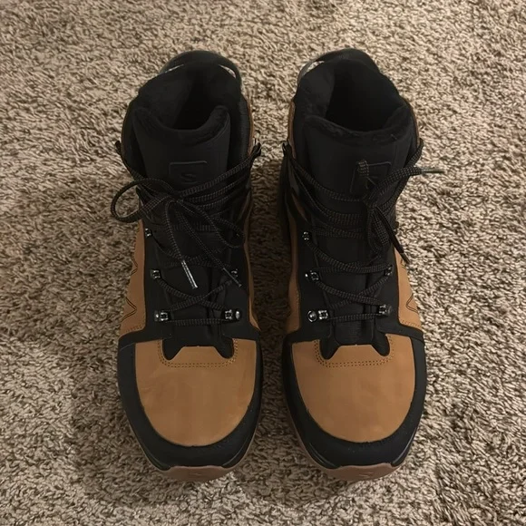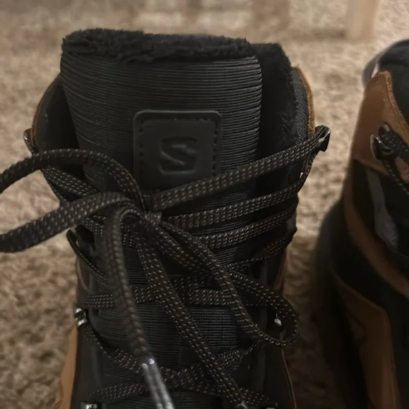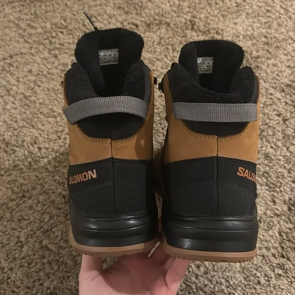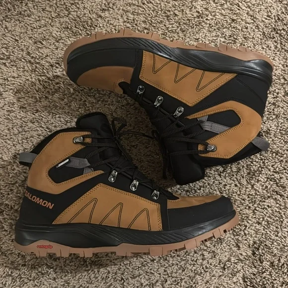These boots are in great condition. They are perfect for spring and winter hiking. The treads are great and they are waterproof. They may not be an exact match to the stock photos. The color is slightly lighter on the actual boots. See photos carefully. What you see is what you get! We equip ourselves for snowy hikes with the Outchill Thinsulate ClimaSalomon Boot. Salmon's winter-ready details, from the waterproof membrane to the Winter Contagrip sole, provide comfort and stability as we take to the trails. 3M's Thinsulate insulation wraps feet in warmth that retains heat in wet weather. Color: brown