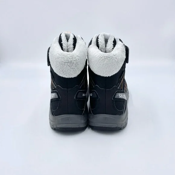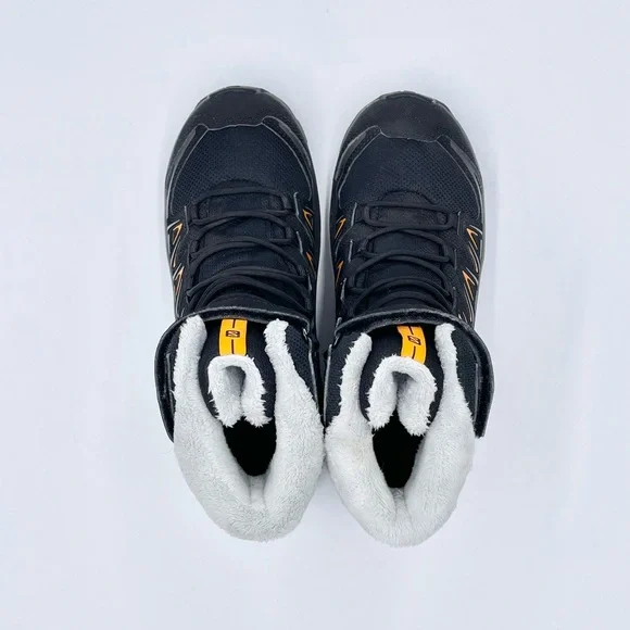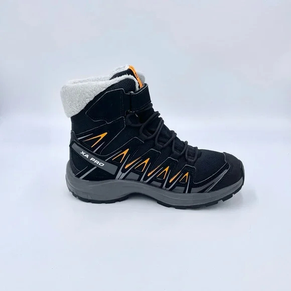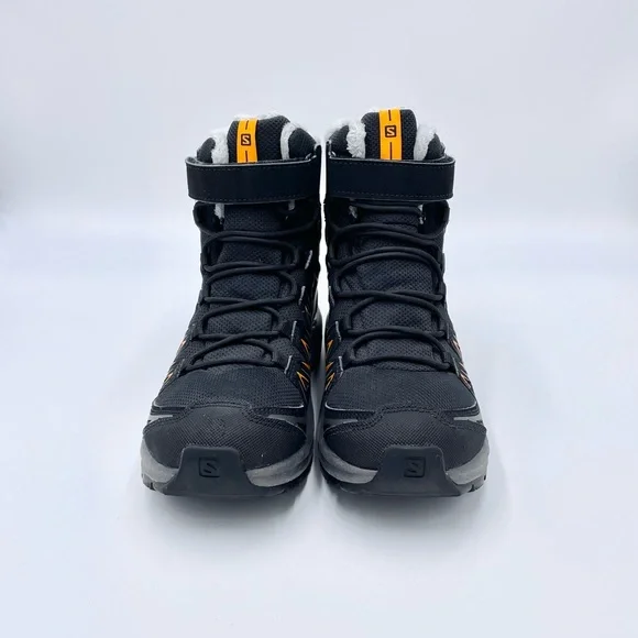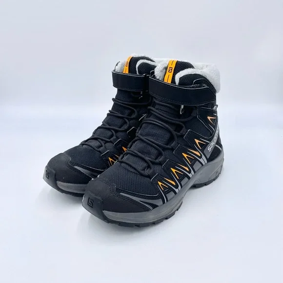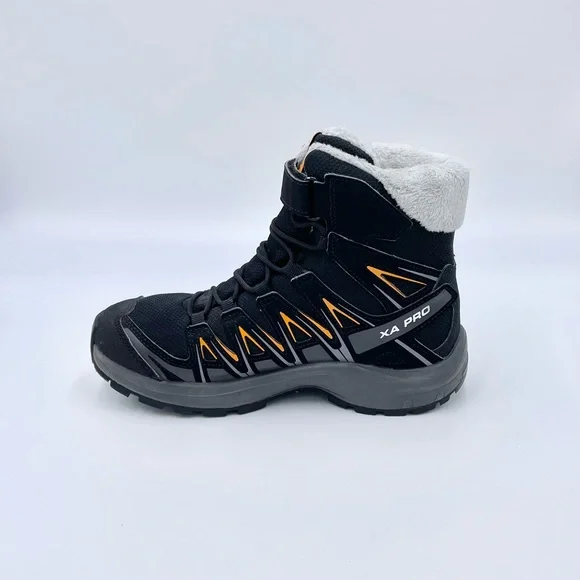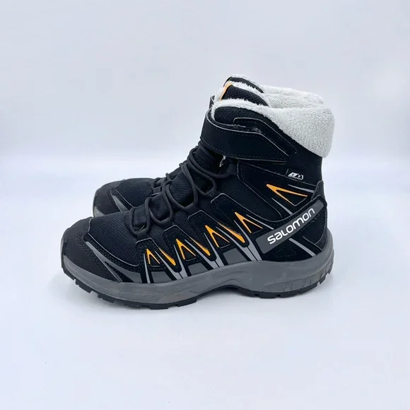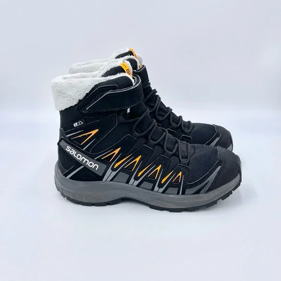 Excellent Like New Condition. No wear to soles. Faint surface dirt around top of fur lining on right boot. Boys/Kids size 2. Will package carefully to ship. The Salomon XA PRO 3D Winter TS CS WP Trail Boots have a fully waterproof interior bootie, including Thinsulate insulation with provides a practical barrier against the cold and snow. The Contagrip sole with aggressive spikes are specially designed for kids' feet, and guarantee a grip on all surfaces and terrain types