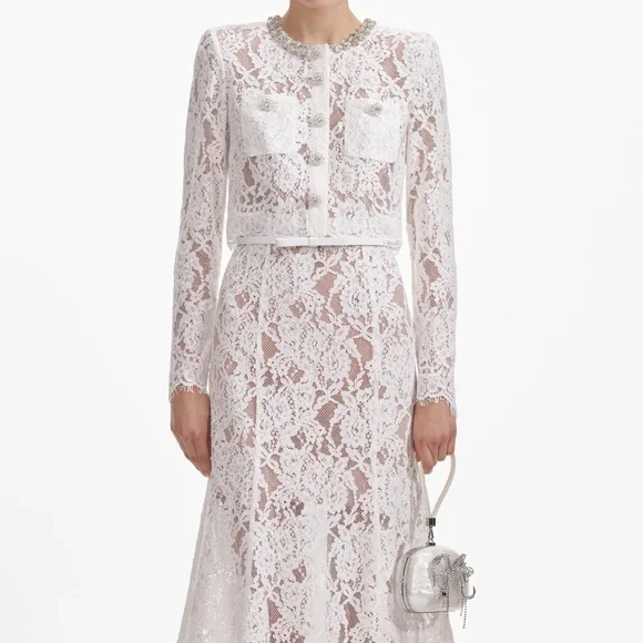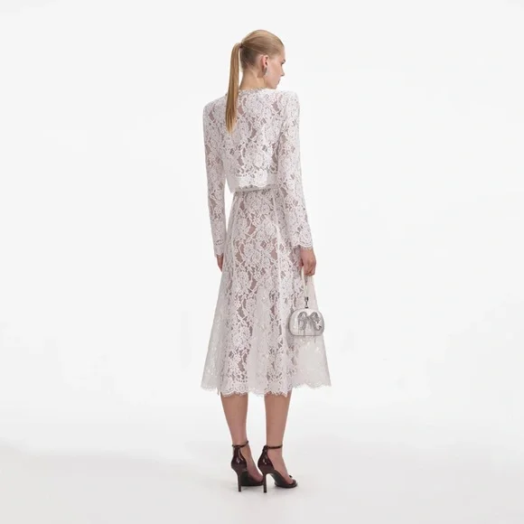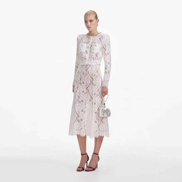 Shipping day will be same day or very next day!This is a two piece Set, the top and Skirt could be wearing separately. Super beautiful and elegant! White belt is included. A vision of elegance in timeless white lace, this dress marries our signature fabric with a chic relaxed silhouette. Pair it with our statement earrings for an effortless party look year-round.Fitted style, take one size up if between sizesConcealed button closure at frontZip closure at skirtFully linedRemovable beltModel is 5ft10/178cm and wears a size UK 6/ US 2. Main: 43% Viscose 29% Cotton 28% Polyamide (Exclusive Of Decorative Sequins)