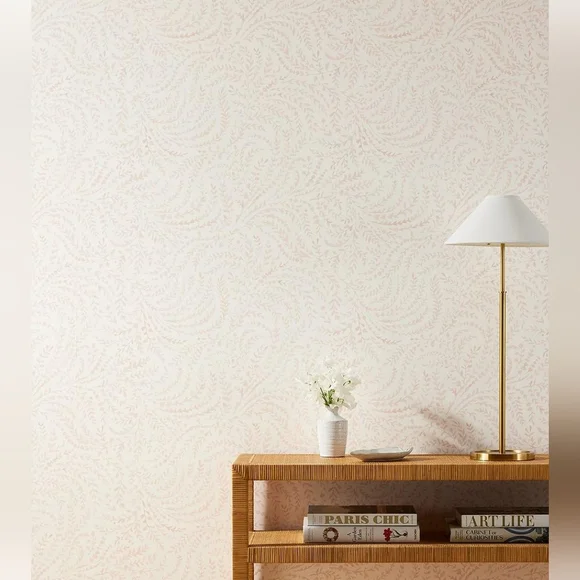 2 rolls of Removable "Priano" Wallpaper by Serena & Lily. Brand New. Retails for $235Color: Pink SandSize: Each unpasted roll measures 20.5 in. wide x 16.5 ft. long and covers 28.2 sq ft.Pattern repeat: 20.5", straight match.Made in the USA. Homegrown. Our painterly pattern wends and winds over a breadth of white. Wild and winsome, billowing in the breeze. From whispering shades to a dynamic display.Gravure printed on 100% coated vinyl with removable paper backing.Easy to wipe clean.Safe to use in well-ventilated bathrooms.Apply it yourself. Readjust with confidence.Recommended on walls with no texture.