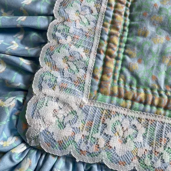 This charming vintage throw pillow cover features a quilted duck design, surrounded by delicate lace trim and ruffled edges. The blue cover adds a touch of elegance to any decor, enhancing the aesthetic appeal of your living space. Its classic design is a testament to timeless craftsmanship.• Decorative pillow cover only• Intricate lace trim• Quilted duck design• Ruffled edges• Square shape• Easy to match with various decor stylesSmall stain on the quilted area. Pillow cover measures approximately 18 x 18 inches.Features:• Includes - 2 Pillow Shams• Throw Pillow, Country Core, Pillow Accets• Spring, Summer, Fall, Winter• Made in United StatesMeasurements:Length 20 in / 51 cmWidth 20 in / 51 cmCondition: Pre-Owned Like NewExcellent Condition, No Flaws, Never Used, Clean (See Photos)Stored in Pet/Smoke-Free EnvironmentSHIPS SAME DAY/NEXT DAYWe Consider FAIR Offers