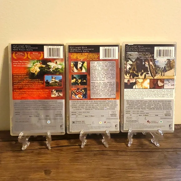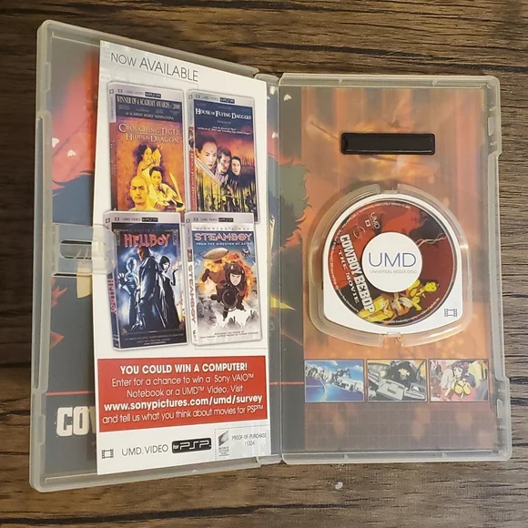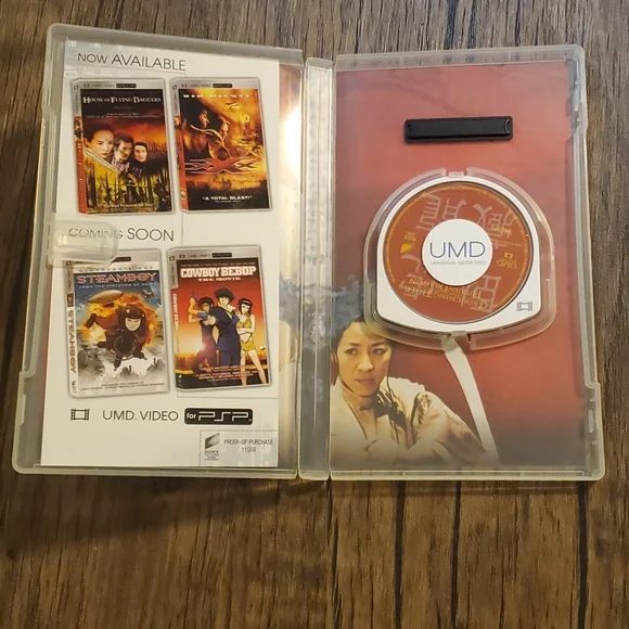 Sony PSP Movie BundleSteamboy (Case has broken top clip)Cowboy Bebop The MovieCrouching Tiger Hidden DragonPLEASE CONSIDER ALL PHOTOS BEFORE PURCHASE.3 or More Listings from My ClosetPurchased in one transaction has an automatic 10% discount applied to purchase. Be on the lookout for other bundle offers sent privately.(total items in cart.bundle listings are considered 1 item in cart)