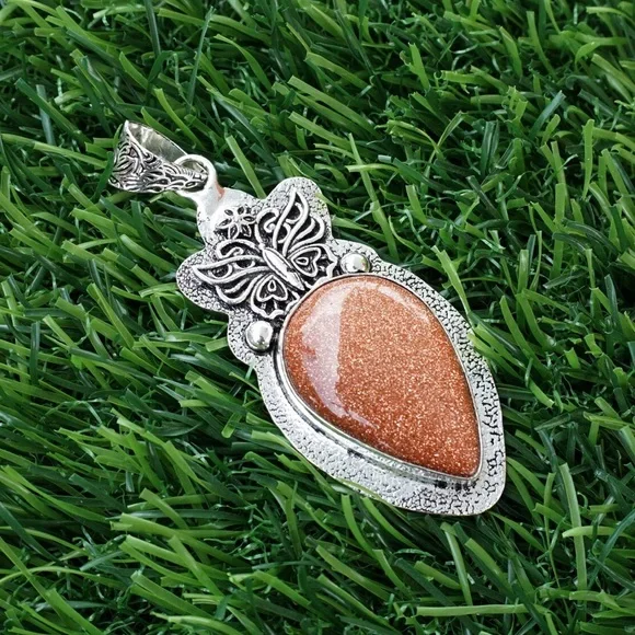Natural sunstone pendant. 925 sterling silver overlay - butterfly and flower accents. Handmade one of a kind artisan crafted piece. All jewelry pieces are packaged in its own beautiful jewelry box or jewelry pouch and wrapped carefully with love - Perfect for gift giving.♡ My jewelry is always made with the best quality materials. Be sure to check out more of my handmade jewelry in my shop, Moon Mist Crystals and Gems, beautiful jewelry of all kinds available!