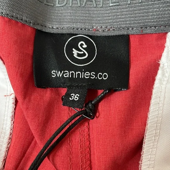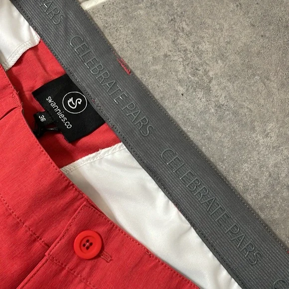 Swannies SULLY SHORTS size 36Red heatherNWTNo frills performance short -- for life on and off the track. We added a rubberized lining to keep your shirt in place when you go for your 4th putter throw in 6 holes.PRODUCT DETAILSFull-stretchprovides flexibility and comfort for a full range of motionComfortbreathable, performance fabric9" In-Seam