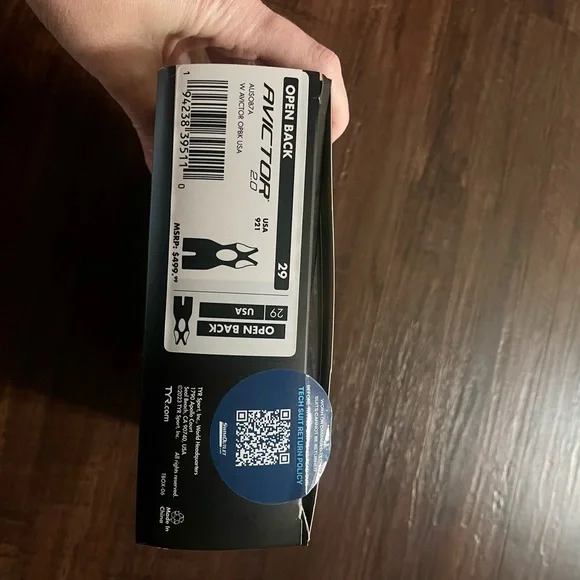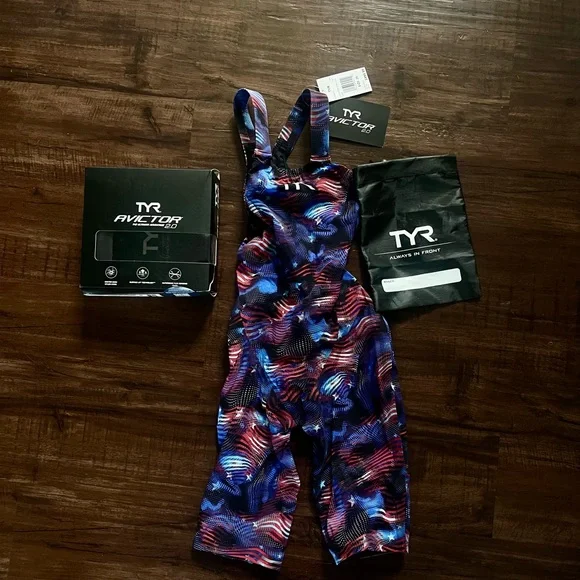 Size 29.Never worn.New with tags.Didn’t realize it was final sale when I bought.Smoke free home. The TYR Women's Avictor 2.0 USA Open Back Tech Suit The TYR Women's Avictor 2.0 USA Open Back Tech Suit Swimsuit is tailored for swimmers who value flexibility and ease of movement, backed by TYR’s latest fabric innovations.FeaturesSurface lift technologyEnhanced hydrosphere technologySupersonic flex bondingSpeed dry fabricationComfort strapsDetails Fabric: 70% Nylon / 30% Elastane Care: Hand wash cold, lay flat to dry Sun Protection: UPF 50+ Chlorine Resistant: Yes Fit: Competitive / Fitted Adjustable: Yes Country of Origin: Made in the USA