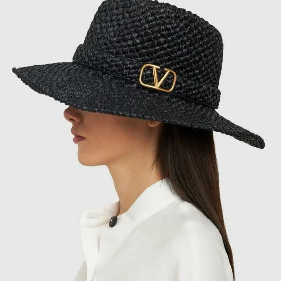 Worn Only Once!Barely Used.Impeccable condition!This hand-crocheted fedora features a breezy design that keeps the sun out while letting air in. Archival VLOGO hardware finishes the look with iconic style.Matterial:RattanMetal logo detailSizes: L, 58Hat is BROWN.The picture showing the hat in black is only to depict style and shape.Dust Bag IncludedThe tag has been cut from hat because I do not prefer tags dangling. Shown in picture. Authentic Valentino hat.
