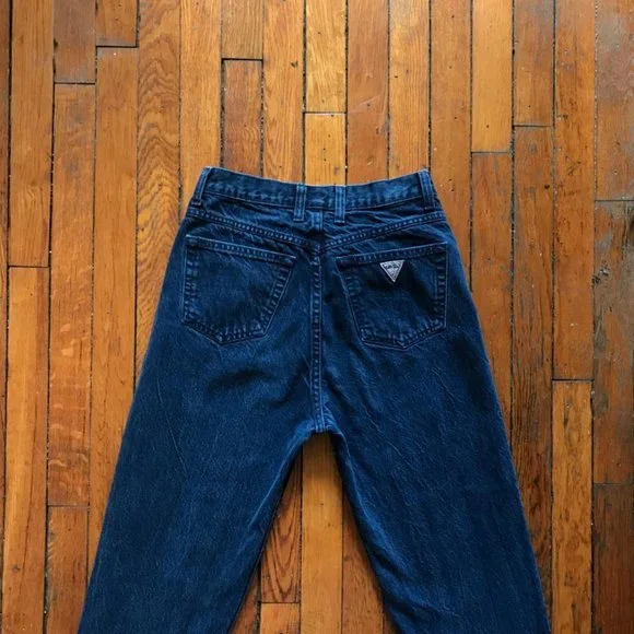 Vintage 80s Guess Jeans Georges Marciano Design Made in USA Women's Dark Blue Faded Stonewash High Waist Slim Leg Denim Jeans.Retro Old School Classic Streetwear Skater Indie Punk Hip Hop Chic Designer Georges Marciano Guess Jeans Perfect for Party School Festival All Seasons Concert Going Out School College.High Waist Slimmer Fitted Body with Straight Cut Legs.Two Front Side Pockets with Two Back Butt Pockets.White Upside Down Triangle Guess Brand Question Mark Logo Patch on Back Right Pocket.In Excellent Condition - Minor Fading.Size - Women - 30W#vintageguessjeans #vintageguessdenim #80sguessjeans #georgesmarcianoguess #resalerareguess
