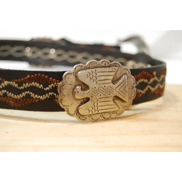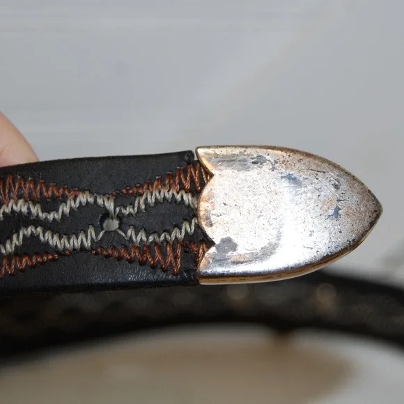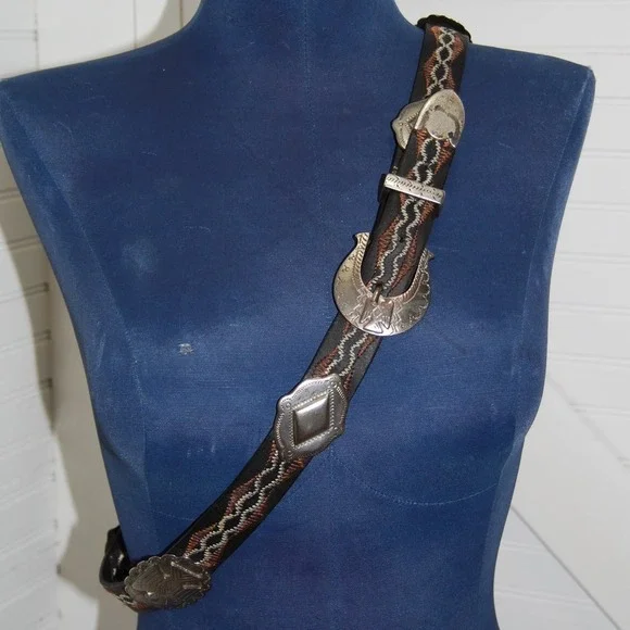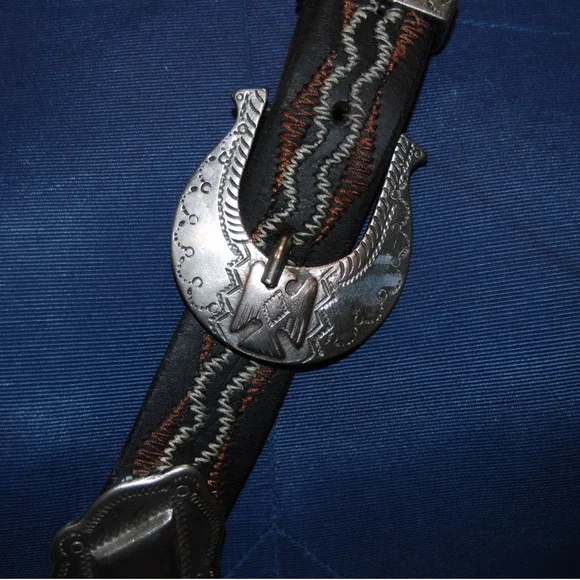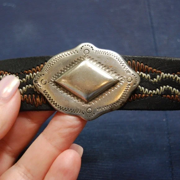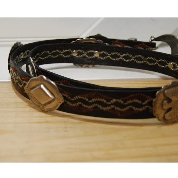 Vintage Adoppia Vita leather concho belt, a masterpiece of craftsmanship that seamlessly combines style and functionality. In great condition, mostly on the buckle pieces, see photos for reference. Measures about 40 x 1 1/2 inches. Incredible native design, made in Italy. As with any item that is vintage or preloved the signs of wear and use can be hard to spot on photos. We do our best to point out any flaws we notice. Ships same or next day. Please feel free to ask any questions. Thank you.