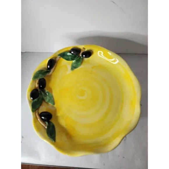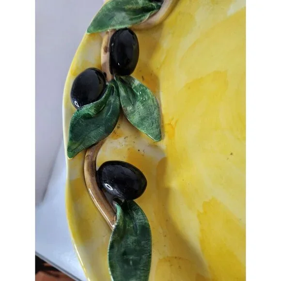 Vintage Italian Pottery 3D Olive Pedestal Serving Dish Appetizer Platter YellowFeatured Refinements: Porcelain, 3D, Pedestal, Hand Painted, Decorative, Serveware, Collectible, VintageCondition: Pre-Owned In Excellent ConditionMeasurements:Height5.5"Width10" We want you to have a positive experience.Please examine the pictures carefully before purchasing!Thank You!
