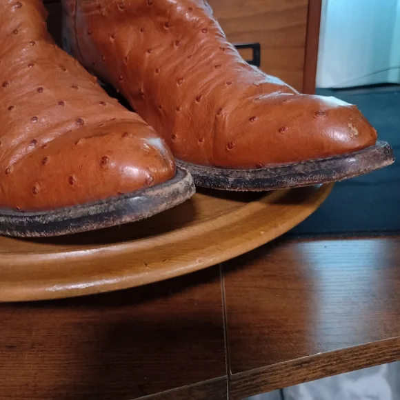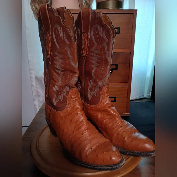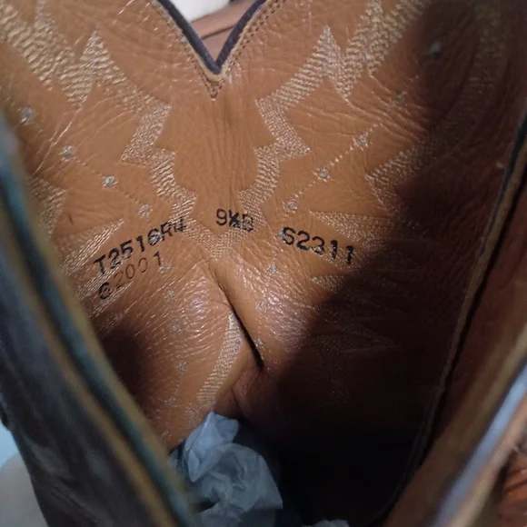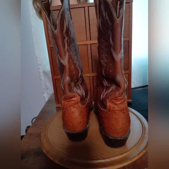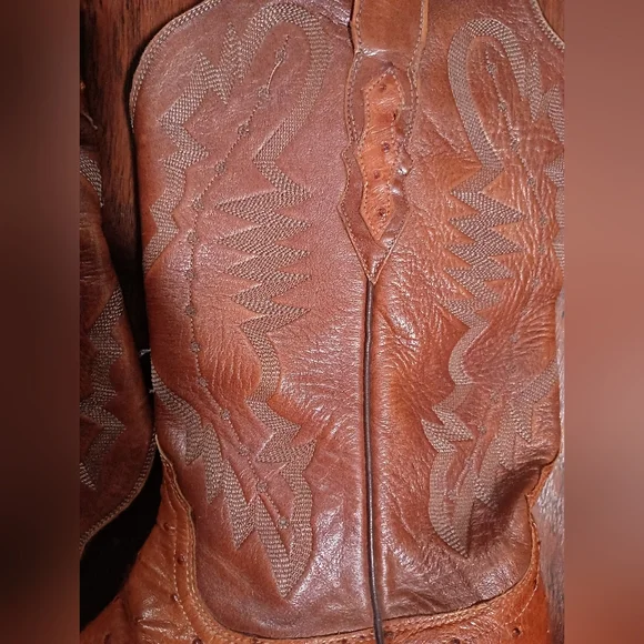Step out in style with these rugged brown leather cowboy boots. Perfect for any occasion, these boots offer both comfort and durability.Great condition. some scuffing on toe but still have a ton of wear as they weren't wor. that oftenAC MDisclaimer: I do my best to inspect the items for all issues and flaws and document but keep in mind this item is used.