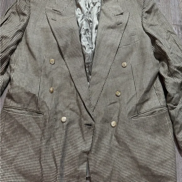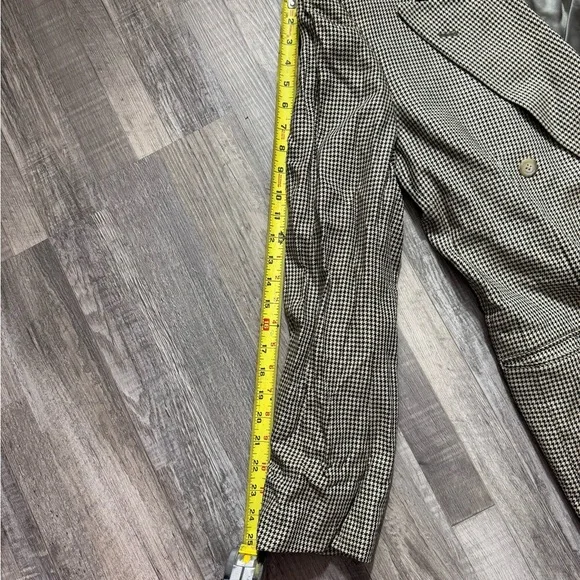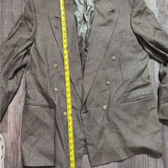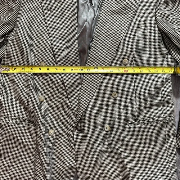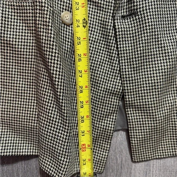 Elevate your wardrobe with this timeless vintage double-breasted blazer from Pincus Brothers Maxwell, crafted exclusively for Nordstrom. Featuring a classic black-and-white houndstooth pattern, this blazer exudes sophistication and is perfect for both business and casual settings. Fully lined with a smooth satin interior for comfort and durability.• Brand: Pincus Brothers Maxwell forNordstrom• Style: Double-breasted blazer• Pattern: Houndstooth• Material: High-quality vintage fabric• Size: See measurements in photos for accurate fit• Condition: Excellent vintage condition with no visible flaws(10)
