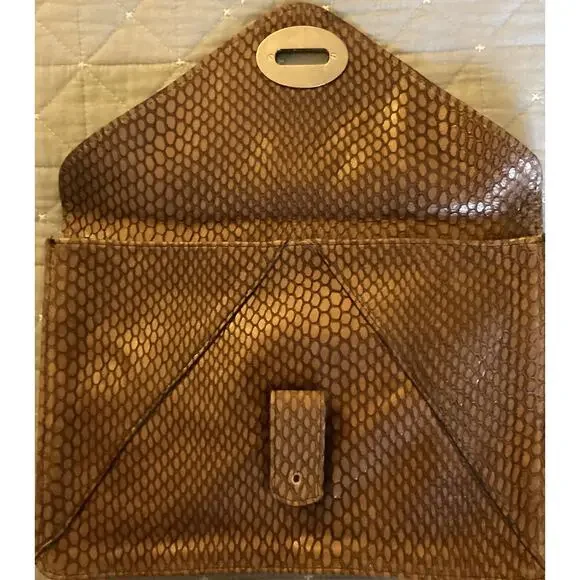 Vintage Streets Ahead Genuine Leather Clutch Purse NWT Made in the USAThis oversized Clutch, a timeless, contemporary piece constructed with vintage snake-embossed leather. With its tasteful minimalism and sophisticated silhouette, this clutch will add a touch of luxe to any ensemble. Refine your style with this luxurious, yet modern accessory.This was purchased approximately 10 years ago at LF stores in Los Angeles.Never been used and is a gem of a find!Details: Vintage snakeskin-embossed leatherSuede lining Magnet closure Handmade in the USAMade in the USA our designers and artisans proudly use only the finest Italian leather and hardwareto create our collection of belts, handbags & cuffs.Hand-made to order in California.CRAFTSMANSHIP : At the heart of our brand lies a dedication to superior craftsmanship. Every product is meticulously crafted by skilled artisans, ensuring the highest standards of quality and attention to detail. Our commitment to excellence is evident in each piece we create.Integrity : We are committed to ethical practices, transparency, and maintaining high moral standards in all aspects of our business. From sourcing materials to manufacturing processes, we prioritize sustainability and fair labor practices. When you choose Streets Ahead USA, you support a brand that values honesty and ethical responsibility.