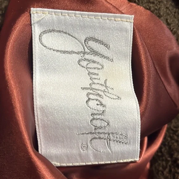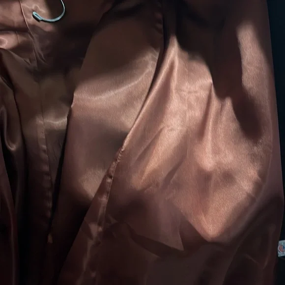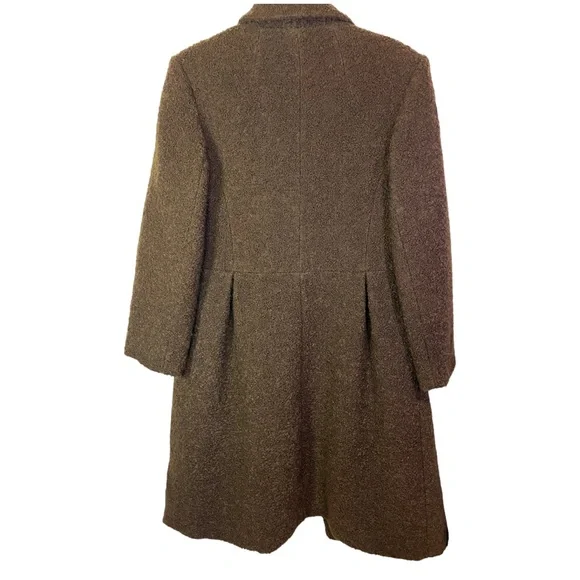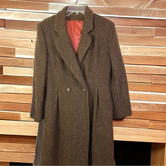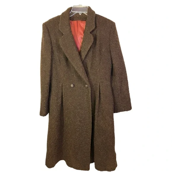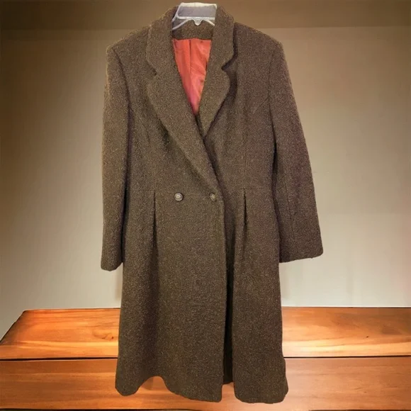 Vintage Youthcraft CoatBrownThis coat is in amazing condition. It’s a beautiful chocolate brown with a textured fabric with brown and gold tone buttons. It has two buttons with one being functional. It also has a snap on the inside that looks like it was sewn back down. It has two pockets and pleated front. Approximate Flat Measurements:16.75” shoulder seams19.5” armpit 17” waist24” sleeve length43” long