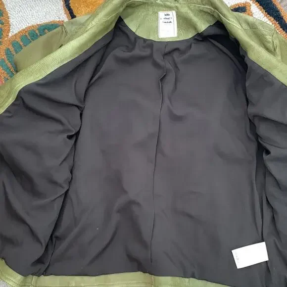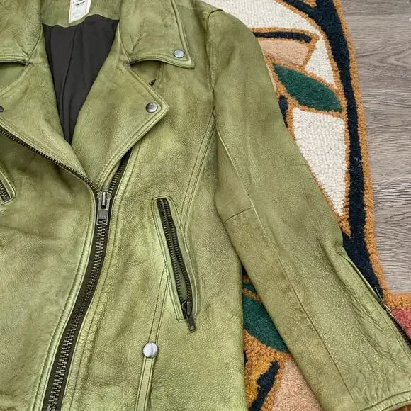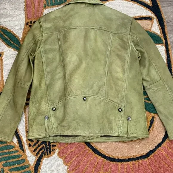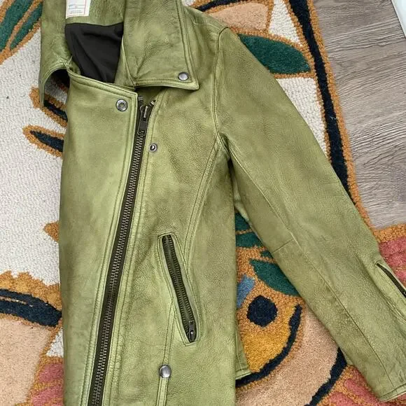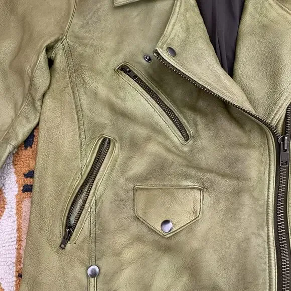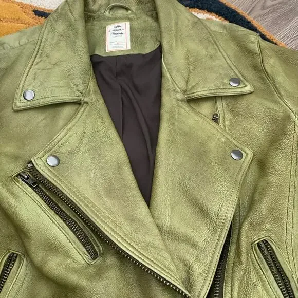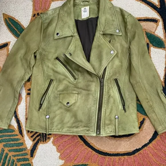 EUC: Unleash your inner rebel with the Jealousy Leather Moto Jacket in Washed Wine. Made from authentic cow leather, its edgy design embodies both adventure and class. Ideal for a late-night ride or a trendy downtown escapade, make a statement wherever you go.Self: 100% cow leatherLining: 100% polyesterMade in IndiaProfessional leather clean onlyFront zipper closureThree zipper pockets and one button pocket at frontZipper cuffsFade detail leather fabricEUC*Light fragrance smell
