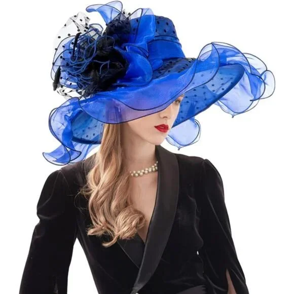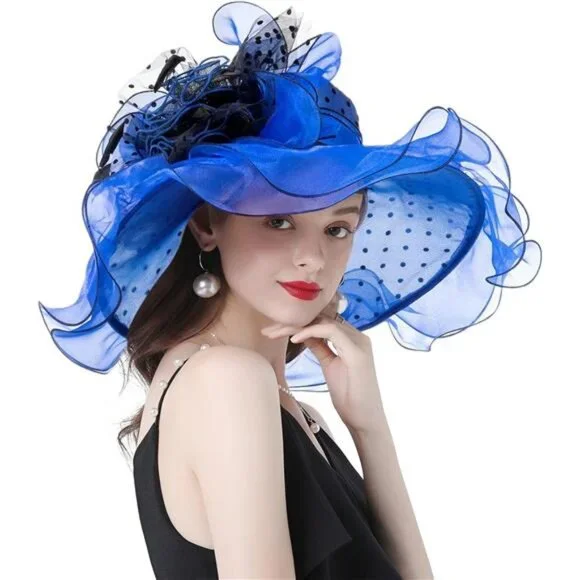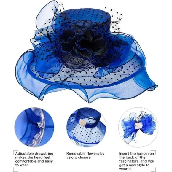 The big flower of the hat can be removed, So can be used as organza church derby hat, or used as fascinator with clipThis wide brim hat has a brim that is 5.1 inchs all the way around, Fit for head circumference about 23 inchs. Which has a small elastic sweatband inside in order to give it a big size range. When the people who has a small headsize can pulled the elastic band to offer a smaller sizeClassic design is timeless, organza and gauze, translucent. Suitable for spring, summer, autumn. Elegance and royalty added to you for all seasons. Quite nice soft in hand, breathable and comfortable. New style very popular in party or formal occasions Standing out from the crowd