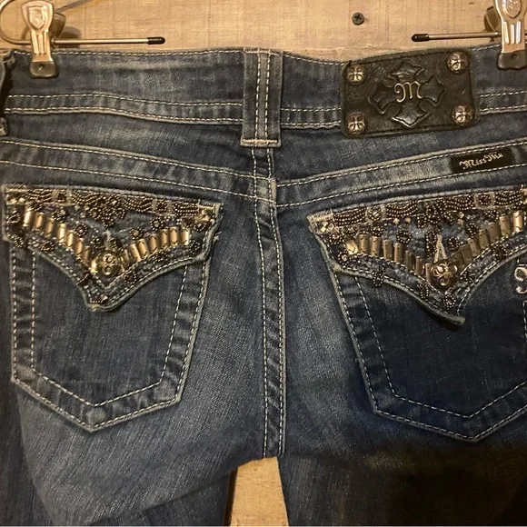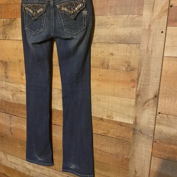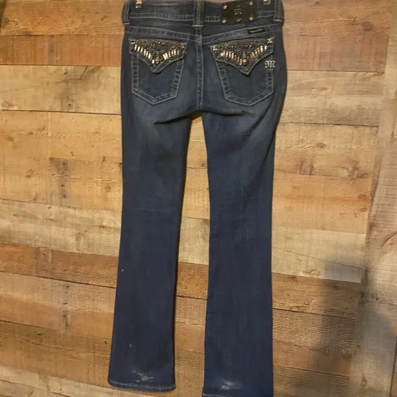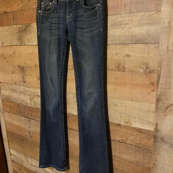 Women's Blue Miss Me Jeans Size 27The pockets have A silver metal beads with A Button look on the pocketsThese classic blue jeans offer a timeless look with a comfortable fit. Perfect for any casual outing.Cleaning out my closest Excellent condition OBO Stylish and comfortable women's blue jeans. Perfect for any casual occasion.