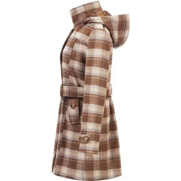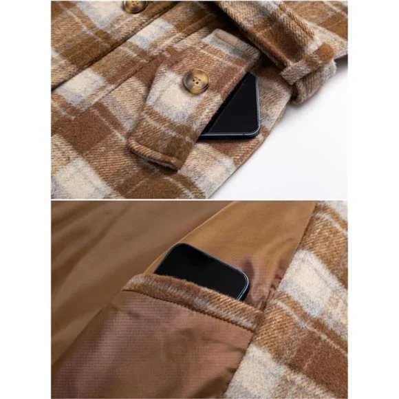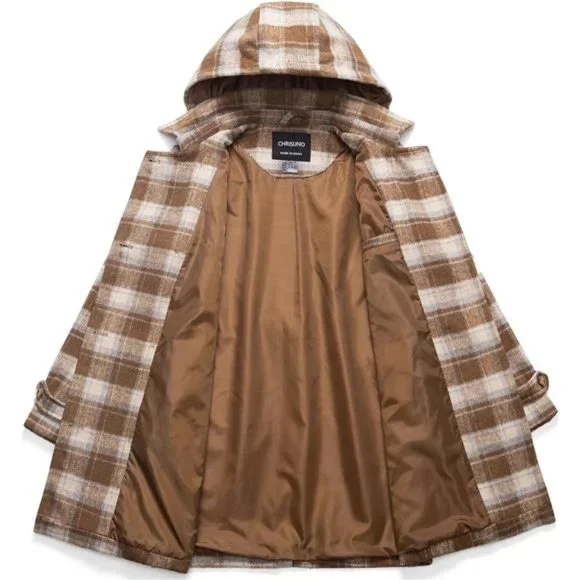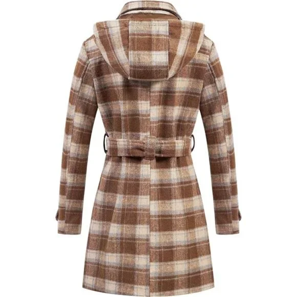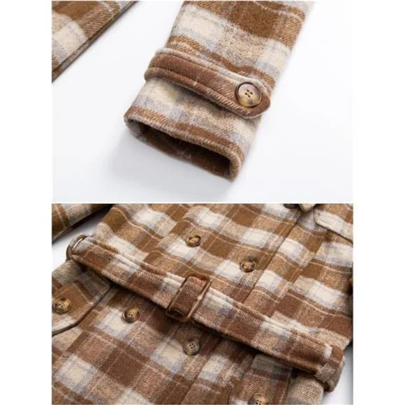 - Color: Light Brown Plaid- 100% Polyester-【Female Curvy Version】 Womens pea coat is tailored according to the proportion of the female figure to fit the body and show the curve. With a detachable and adjustable waist belt, you can adjust the waist curve according to your needs. Classic double-breasted wool trench coat never goes out of style.-【Enhance Warmth】 Women's wool peacoats is specially designed for the winter season, with thick down alternative filling, so that you will not feel cold in the winter. you can also choose silky spandex lining wool blend coat for spring and fall season. Let you wear a classic woolen coat in any season.-【Resistant Cold Wind】 This Winter Wool Coat is designed with a detachable hood to resist the cold wind anytime and anywhere. The length of the coat covers the hip perfectly, and the cold wind will not blow into the body.High-density soft fabric, Effectively resist cold weather. Machine washable fabric, it will not fade, shrink, and wrinkle after washing. you can wear it straight to work!-【Main Details】 1. Resin buttons: Classic resin buttons are neatly arranged and sewn, not easy to fall off. Also matched with 2 spare buttons, so there is no need to worry about losing buttons. 2. Tear-resistant lining: prolongs the use time. 3. Multiple pockets: 2 hand pockets are deep enough to warm your hands in the cold winter. Inner pocket can hold mobile phones, keys and other items.