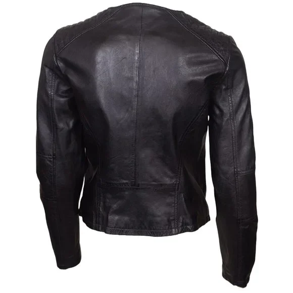 All orders ship next business day!Women's Motorcycle Leather Biker JacketConditions: New/clean condition/No holes/No stains/No pilling/No fadeColor: BlackMultiple Sizes Available--Fitted leather jacket features a modern, cropped silhouette.--Paneled shoulders lend a constructed design.--Long sleeves--2x Zip hand pocketsGenuine LeatherImportedZipper closureDry Clean OnlyVegan Leather---Biker, Motorbike, CasualSmoke free and pet free home!