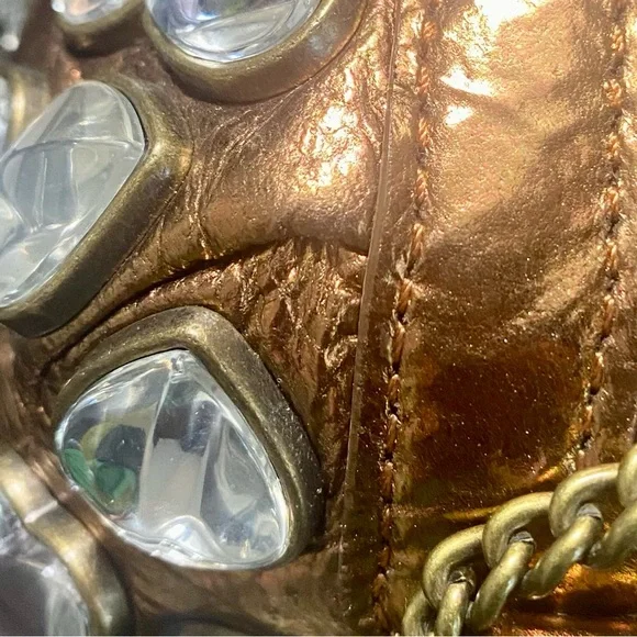 Y2K BETSEY JOHNSON Metallic Gold Brownpurse with embellish silver hearts